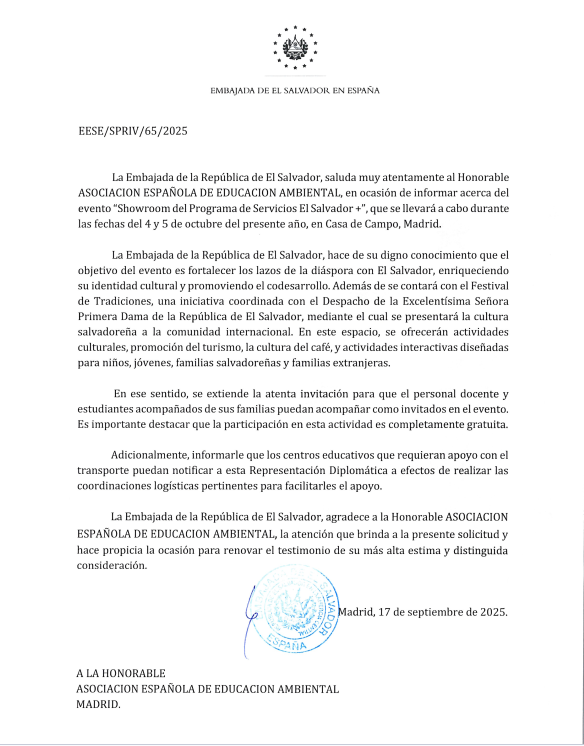 Invitación desde la Embajada de El Salvador — No hay comentarios
